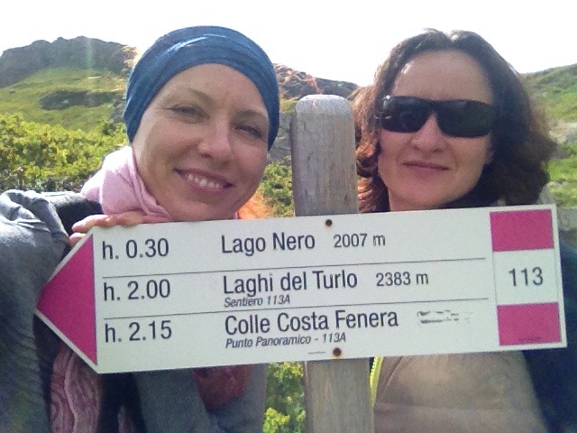Facciamo la merenda al Lago Nero, poi schendiamo. La distanza non è lunga, ma camminnando “consapevolmente” ci mettiamo piu’ tempo.